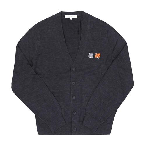 25FW 메종키츠네 OM051CFKT1036 P190 남성 더블 볼드 폭스 헤드 패치 레귤러 가디건 앤트러사이트