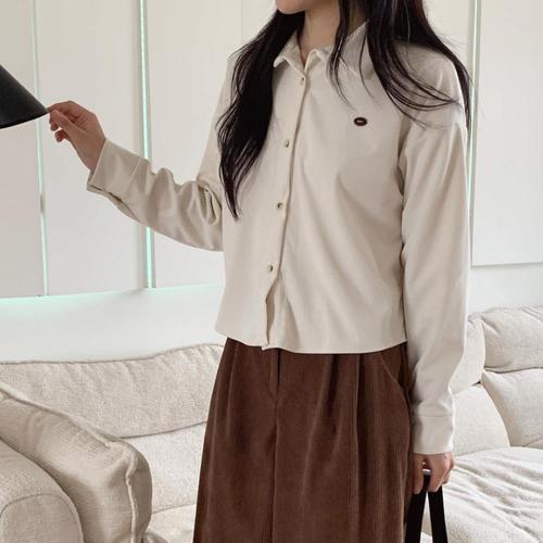 [옷자락] 여자 면혼방 메탈 팬던트 골덴 세미크롭 남방 셔츠