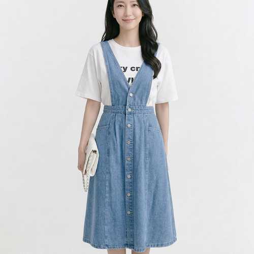 NO965 데일리 캐주얼 A라인 앞버튼 데님 멜빵 원피스