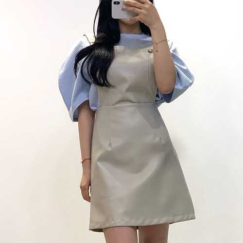 슈팅스타 / 레더 캐주얼 큐티 멜빵 뷔스티에 슬림핏 미니 원피스
