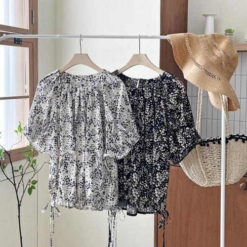 [에이비에프지]플라워패턴 라운드넥반팔면블라우스 APY3QB34H