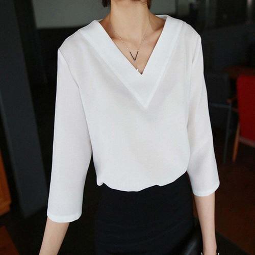 [오너클랜]인기상품 여름용 브이넥 여성 기본 반팔 셔츠 데일리 코튼 블라우스 [WFLHRSY_260208]