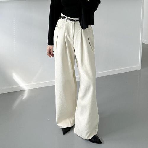 [다잇템]여자 넓은 FW 핀턱 벨트세트 면원단 바지 (18987588A)