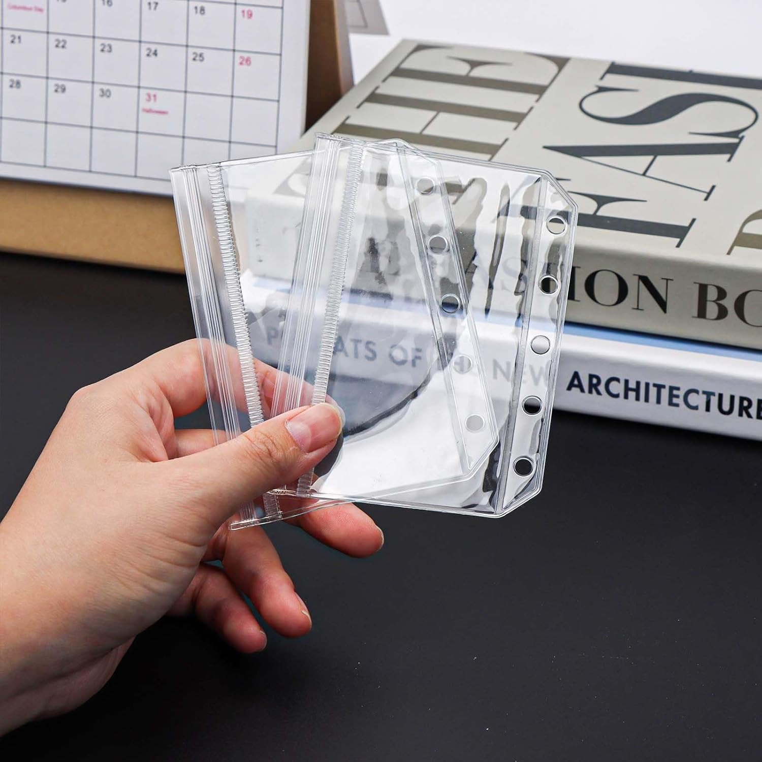 TEMU 12개 투명 PVC 지갑 봉투 6홀 지퍼 M5 바인더 인서트 사진 슬리브 5링 바인더용 카드 청구서