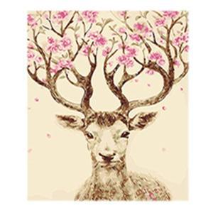 대형명화그리기(60 X 75cm) DIY 유화 그림 그리기 세트 동물 금전수와꽃사슴, 1개