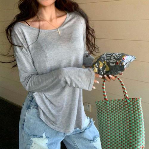 [옷자락] 여자 모달 브이넥 슬림핏 데일리 긴팔티셔츠