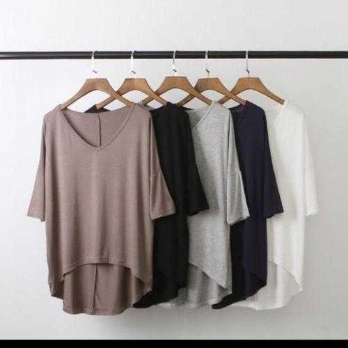 [오너클랜]인기상품 루즈핏 모달 반팔 티셔츠 V넥 언발란스 캐주얼웨어 [WFLL0FK_260304]