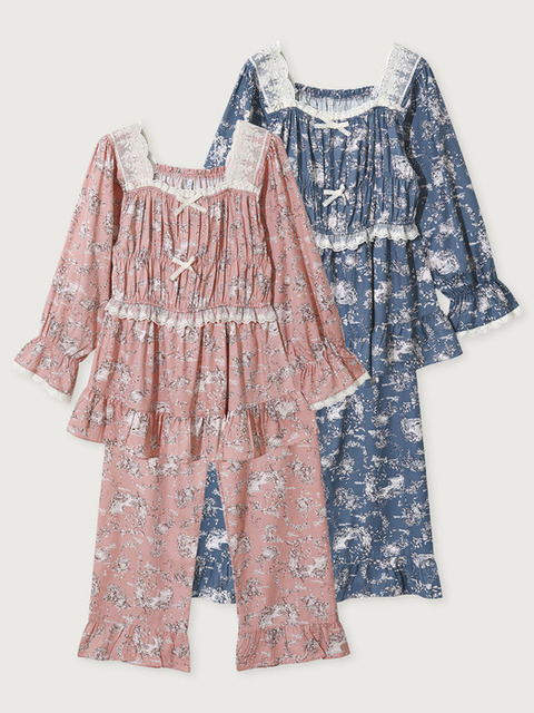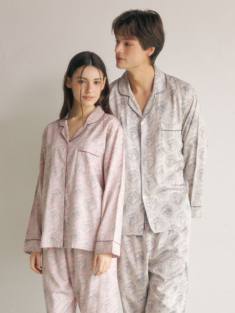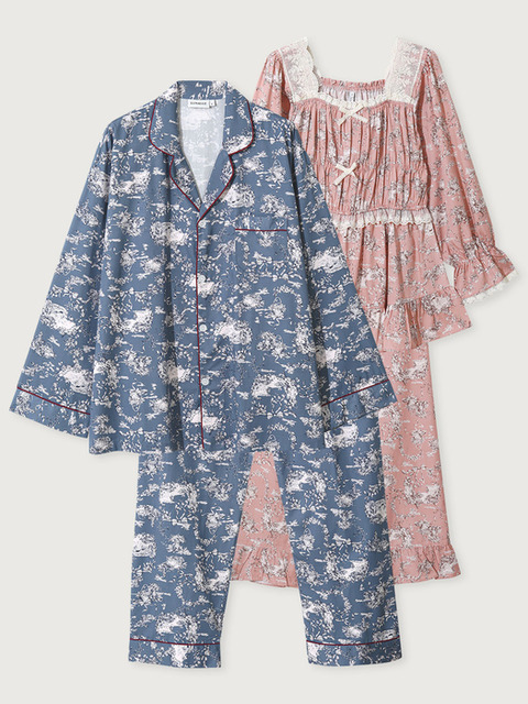 [루나루즈 스튜디오] 커플 샬롯 모달코튼 긴소매 스퀘어넥 투피스 잠옷(2C)