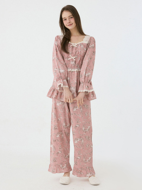 [lunaluz](신세계 사우스시티)여성 로즈듀오 모달코튼 긴소매 라운드넥 투피스 잠옷