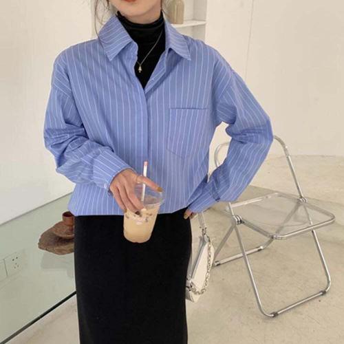 [셀럽하우스]여자 FGDC2732 데일리 편한 예쁜 모던 블루 스트라이프 셔츠