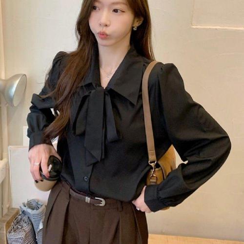 [오너클랜]인기상품 리본포인트 모던 셔츠형 간절기 면 블라우스 [WFLIOM2_260301]