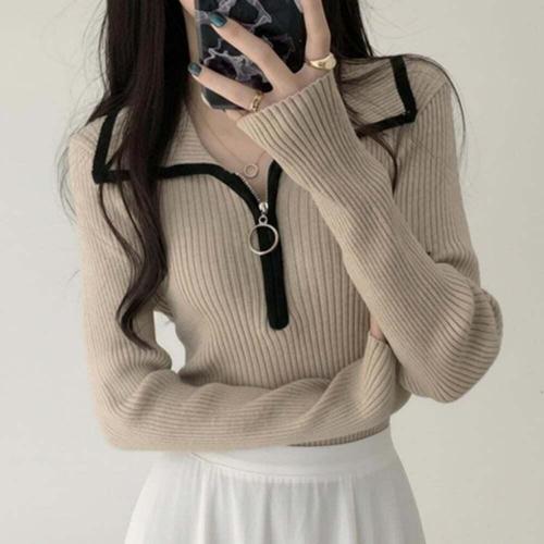[오너클랜]인기상품 반집업 모던 니트 긴팔 포인트 빅카라 긴팔티셔츠 [WFLPUO7_260124]