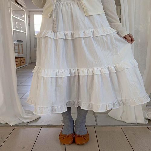 [엘루이즈][엘루이즈] 쥬이니 모리걸 올밴딩 프릴 롱 스커트(4color)