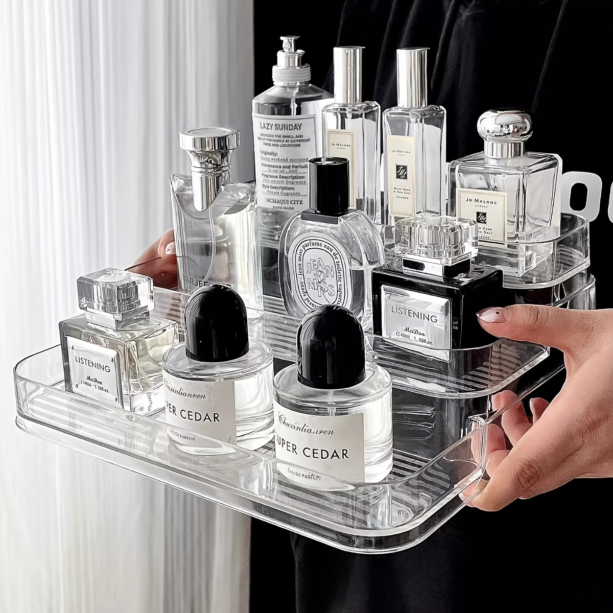TEMU 다중 수납 공간이 있는 투명 플라스틱 화장품 정리함 | 향수, , 메이크업 보관을 위한 조리대 수납 - 가정 또는 살롱에서 사용하기에 튼튼한 화장대 정리함, 트렌디한 투명 디자인