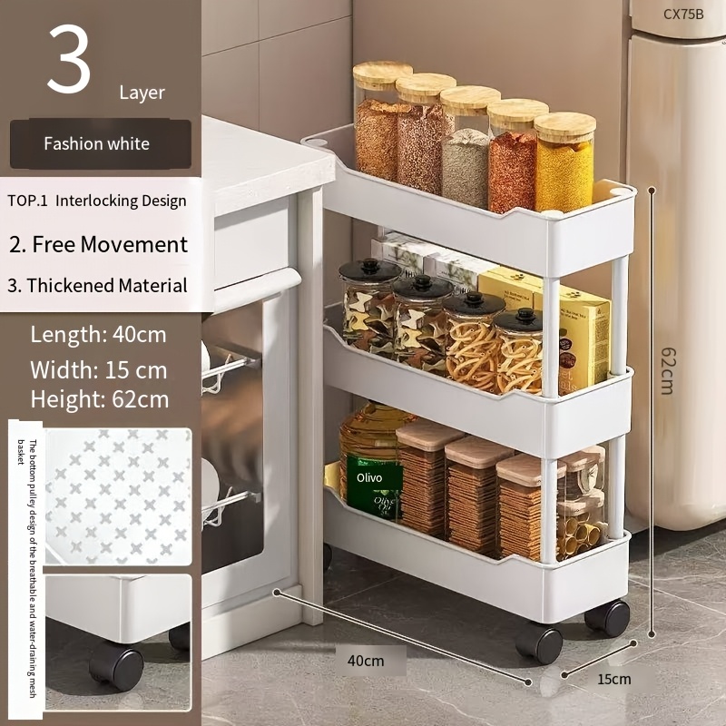 TEMU 4륜 360도 회전 수납 카트, 3/4/5단 블랙 & 화이트 플라스틱 수납 선반, 주방, 욕실, 옷장용—캐스터 장착 공간절약형 디자인 | 모던 수납 선반 | 내구성 플라스틱 선반, 수직 수납 선반, 스탠딩 수납 선반, 선반