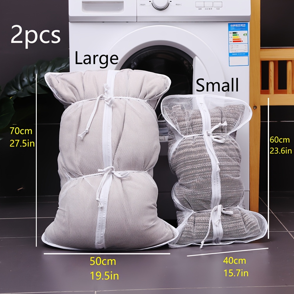 TEMU 다양한 사이즈의 다용도 세탁망 2개 세트. 드로스트링 디자인과 미세한 메시가 특징이며, 장난감, 베개, 쿠션 등을 세척하는 데 이상적입니다. 화이트 색상입니다.|가방|보부상가방
