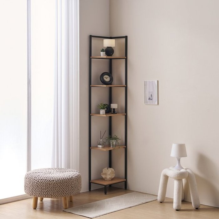 BILIMO 코너 책장 다용도 선반 견고한 인테리어 책꽂이 수납 5단, 나뭇결, 5단