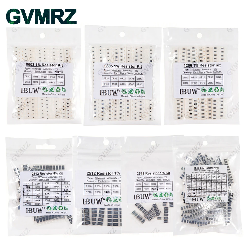 0201 0402 0603 0805 1206 1% 5% SMD 저항기 모음 키트 1R-1M 10K 100K 1K 100R 저항 세트 DIY
