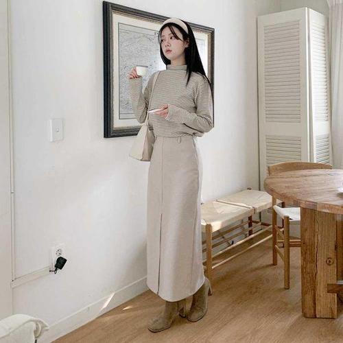 [옷자락] 여자 클래식 모직 도톰 슬릿 h라인 롱 스커트