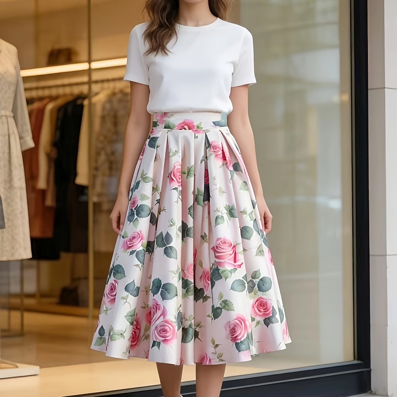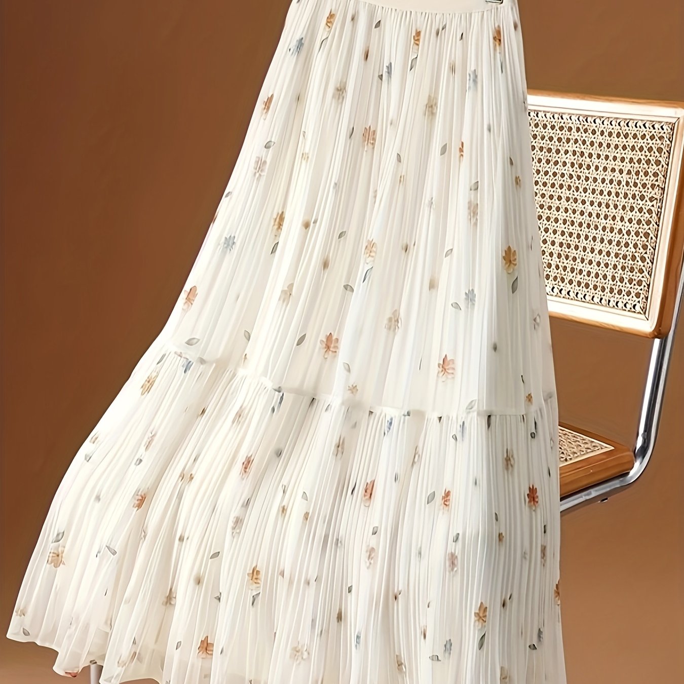 TEMU 여성용 하이웨이스트 다용도 통근 스커트, 여름용 우아하고 패셔너블한 주름 플로럴 프린트 휴가 스커트