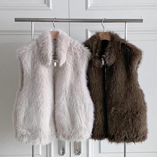 JUSTFEELING 여성 숏 코트 가을겨울 따뜻한 밍크베스트 여우털 라이크 베스트 패션 여성의류 아우터 방한 민소매 인조모피 자켓