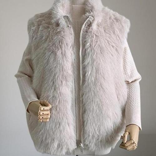 여자 겨울 포근 캡소매 인조퍼 조끼 베스트