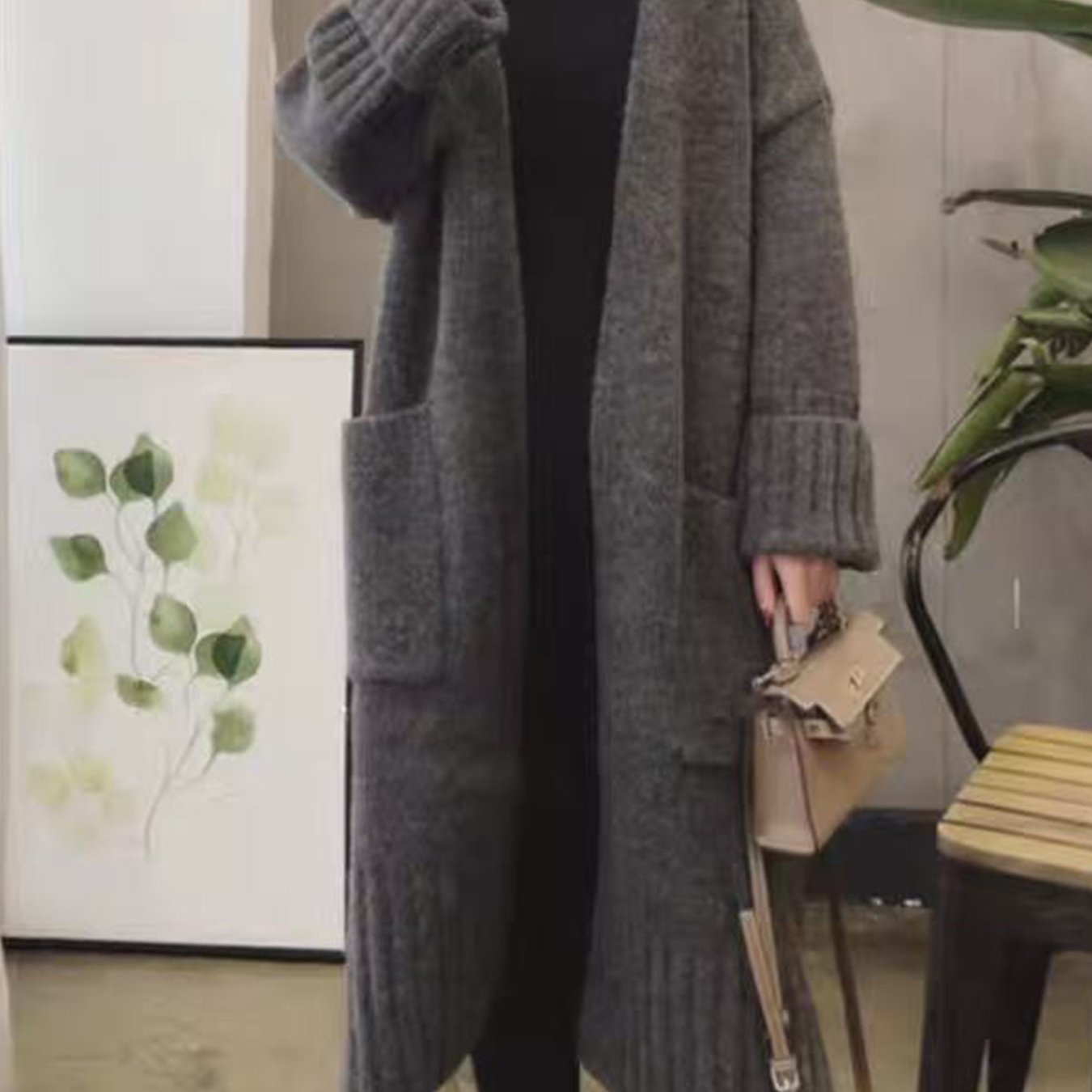 TEMU 여성용 캐주얼 루즈핏 롱 포켓 단색 스웨터 코트 (가을/겨울)