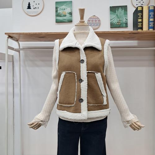 [셀러허브_여성트랜드패션]여자 FW 양털 카멜 조끼 포근한 무스탕 조끼
