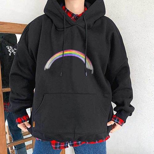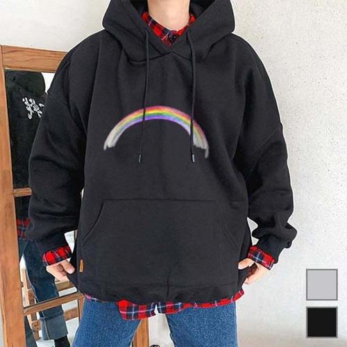 [셀럽하우스]무지개 UNVM1770 프린팅 포인트 기모 안감 일반핏 후드티