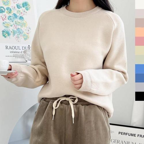 [다잇템]여자 파랑 원컬러 기모맨투맨 무지개 긴팔티 (9357840A)