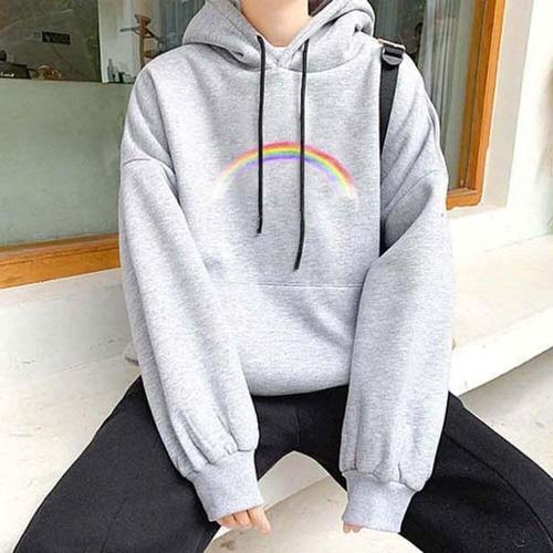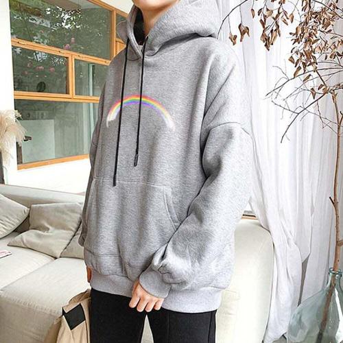 [셀럽하우스]여자 ZZUJ5187 무지개 맨투맨티 가을 겨울 코디 학생 여사친룩