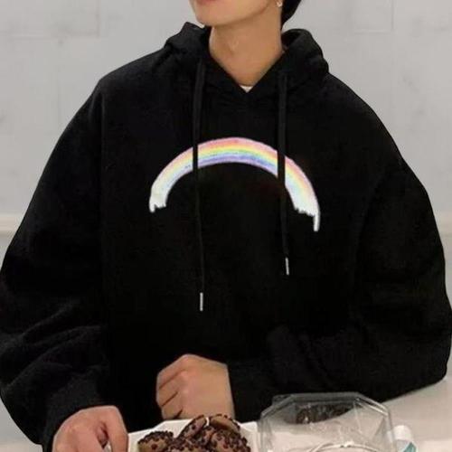 [옷자락]남성 겨울 기모 후드 루즈핏 맨투맨 무지개 패턴