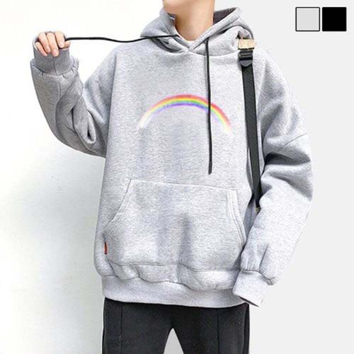 [셀럽하우스]무지개 FKGQ9050 프린팅 포인트 기모 따뜻한 심플 남성 후드티
