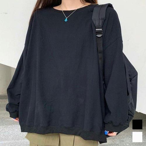 [모로엠]오버핏 라운드 무지 맨투맨 긴팔 티셔츠 ON-TSA-QWFN0XU4