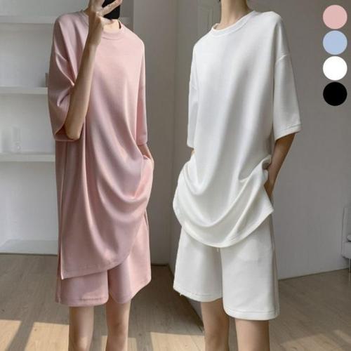 [에이치플러스몰]무지 여성 캐주얼 반팔 반바지 필수템 트레이닝 세트
