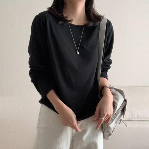 [유야]여성 면 스판 무지 라운드 긴팔티 기본티 -FTS1066- 봄 가을