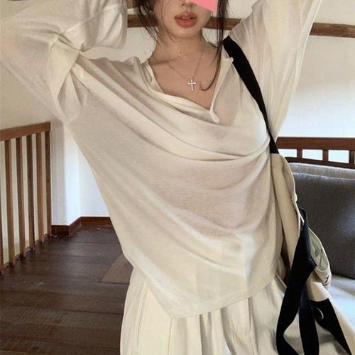 [오너클랜]인기상품 기본 무지 시스루 스판 긴팔 티셔츠 여성용 데일리 착용 [WFLHZLI_260227]
