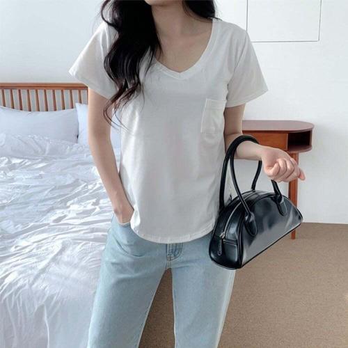 [오너클랜]인기상품 여성용 여름 반팔 무지 브이넥 스판 포켓 티셔츠 [WFLHJDC_260208]