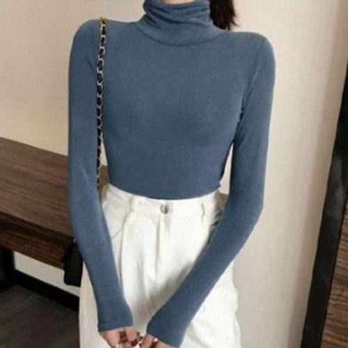 [오너클랜]인기상품 여성용 기모 스판 목폴라 긴팔티 가을 무지 베이직 기본티셔츠 [WFLHYZW_260210]