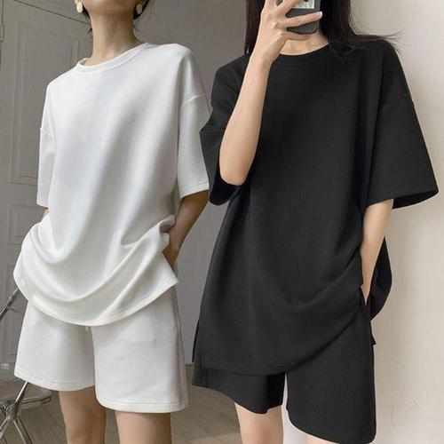[에이치플러스몰]여성 여름 캐주얼 패션 무지 반팔 반바지 상하의 세트