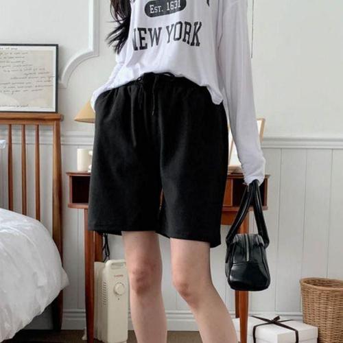 [에이치플러스몰]블랙 베이직 무지 5부 면 반바지 여자 여름 홈웨어