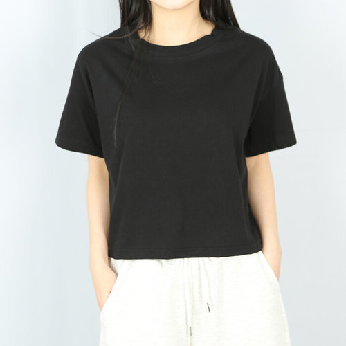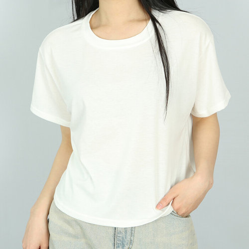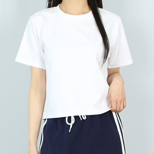 여성 나그랑 크롭 반팔 티셔츠 라운드 스판 무지 티