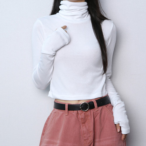 파라노말샵 / 무지 소매 워머 슬림 크롭 폴라티 (파라노말샵)