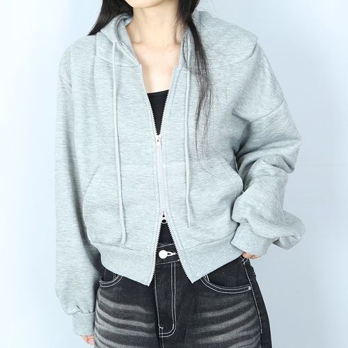 [써니 패션] 여성 봄 간절기 무지 크롭 후드 집업