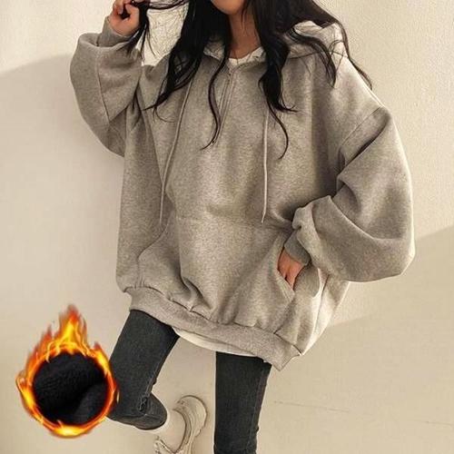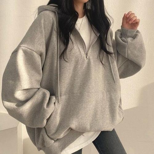 [셀러허브_여성트랜드패션]오버핏 기모후드티 반집업 무지 남녀공용