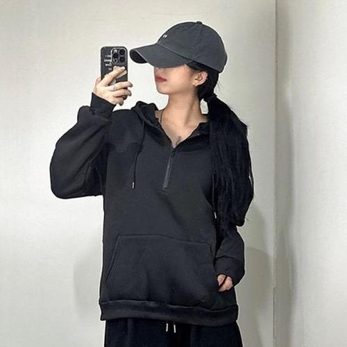 [JHQRLTTF_4B]무지 베이직 여자후드티 겨울 반집업 기모