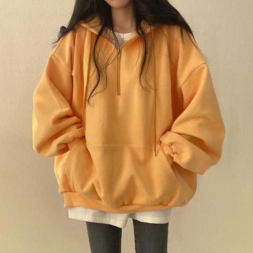 [옷자락] 여성 캐주얼 무지컬러 반집업 포켓 후드 맨투맨