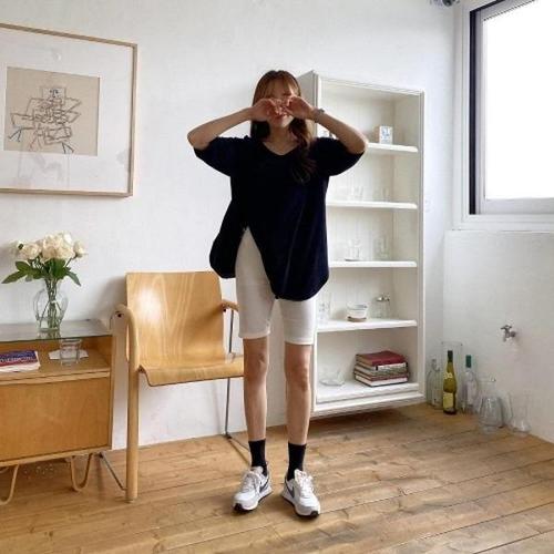 [다잇템][다잇템] 여자 슬림핏 탄력 무지이너 U넥 5부하프 티셔츠_16323928_588872