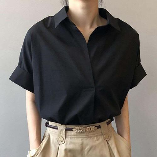 [오너클랜]인기상품 오픈카라 루즈핏 무지 5부반팔 셔츠블라우스 [WFLS28R_260125]