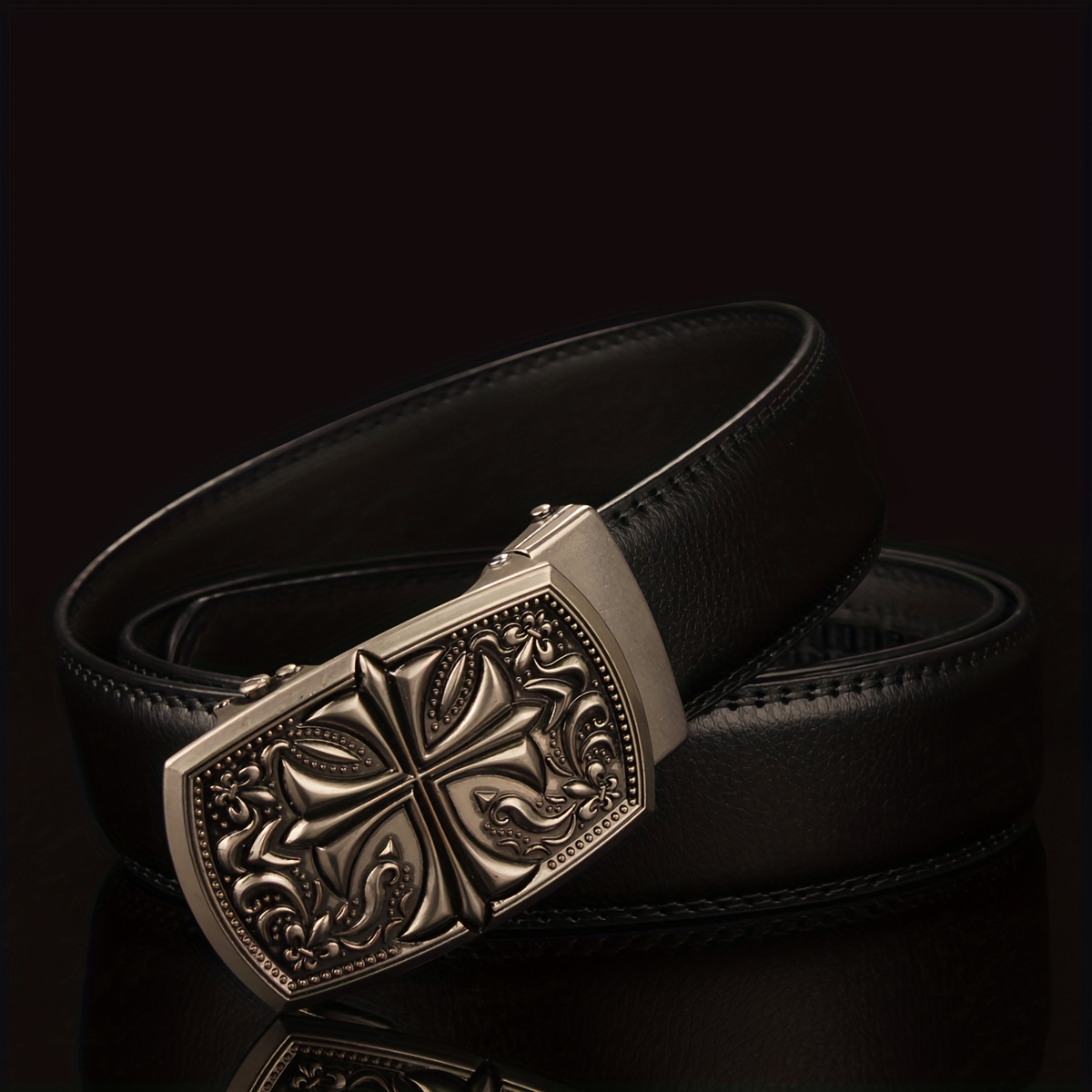 TEMU 남성용 자동 버클 벨트, 크로스 플라워 디자인, 사이즈 조절 가능, 우아함으로 개인 스타일을 향상시키며 과도한 캐주얼함을 피함, 할로윈 및 크리스마스와 같은 다양한 행사에 적합